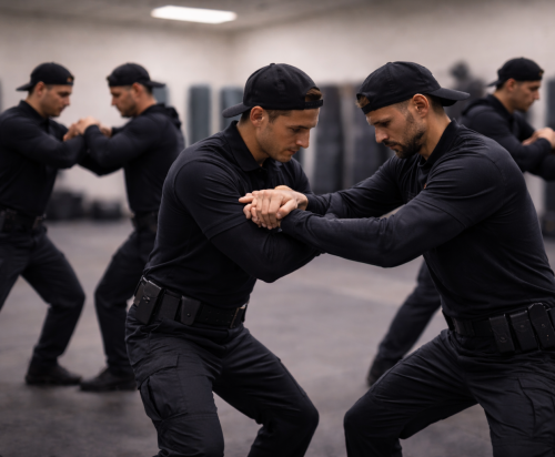 Beim uns trainierst du mit Fokus auf Distanzmanagement, Deeskalation und rechtssicheres Handeln – für Alltag, Beruf oder Einsatz. Im Mittelpunkt stehen Kontrolle, taktisches Verhalten